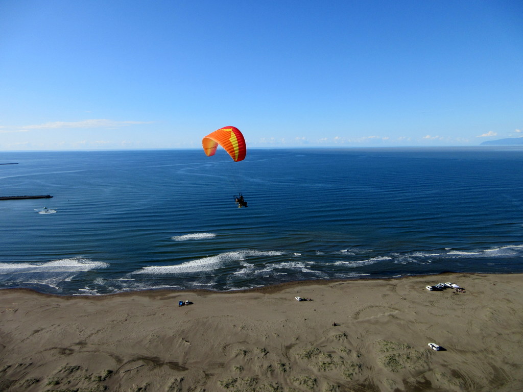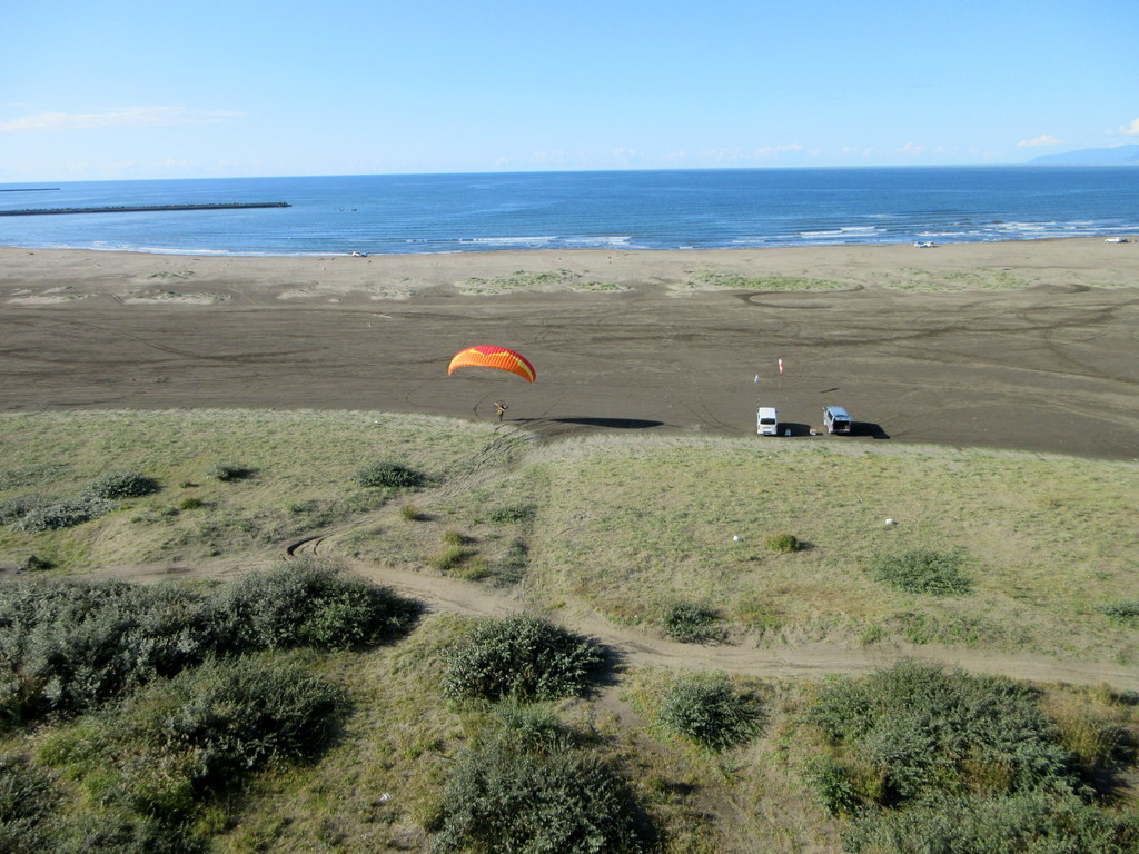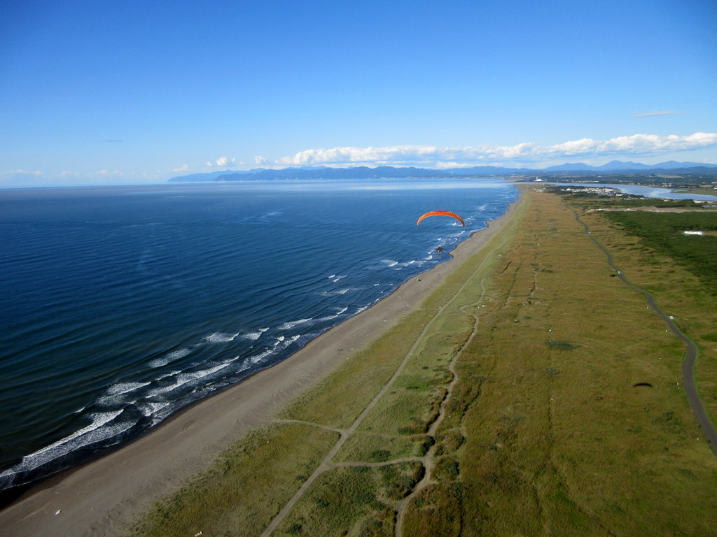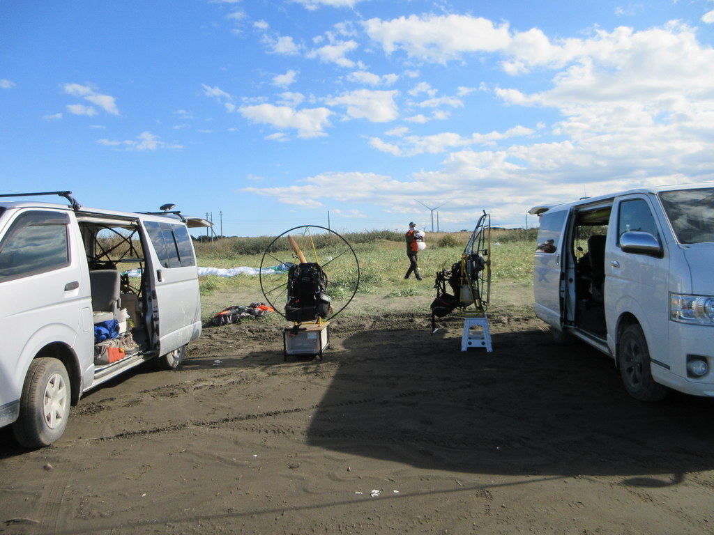 今日は午後から海風が入る予報だったので楽しみにしていたのですが、だーれも行く人がいないようで、僕は仕事をしていたのですが、お昼過ぎに種畑さんから突然「まだ東風です」と、LINEが入ったので大急ぎで石狩に行きました。穏やかな海風が入っていて、久しぶりのフライト日和です。